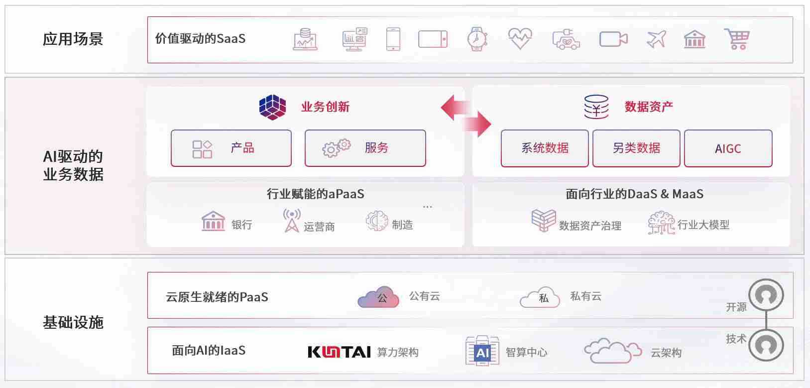 数字时代,,围绕企业数字化转型的关键要素,,,,uppay钱包数码开创性的提出数云融合战略和技术体系框架,,,着力在云原生、、、数字原生、、AI原生和信创产业上架构产品和服务能力,,,,为处在不同数字化转型阶段的快消零售、、、、汽车、、金融、、、、医疗、、政企、、教育、、、运营商等行业客户提供泛在的敏捷IT能力和融合的数据驱动能力,,构建跨界融合创新的数字业务场景和新业务模式,,,,助力企业级客户建立面向未来的核心能力和竞争优势,,,全面推动社会的数字化、、智能化转型升级。。